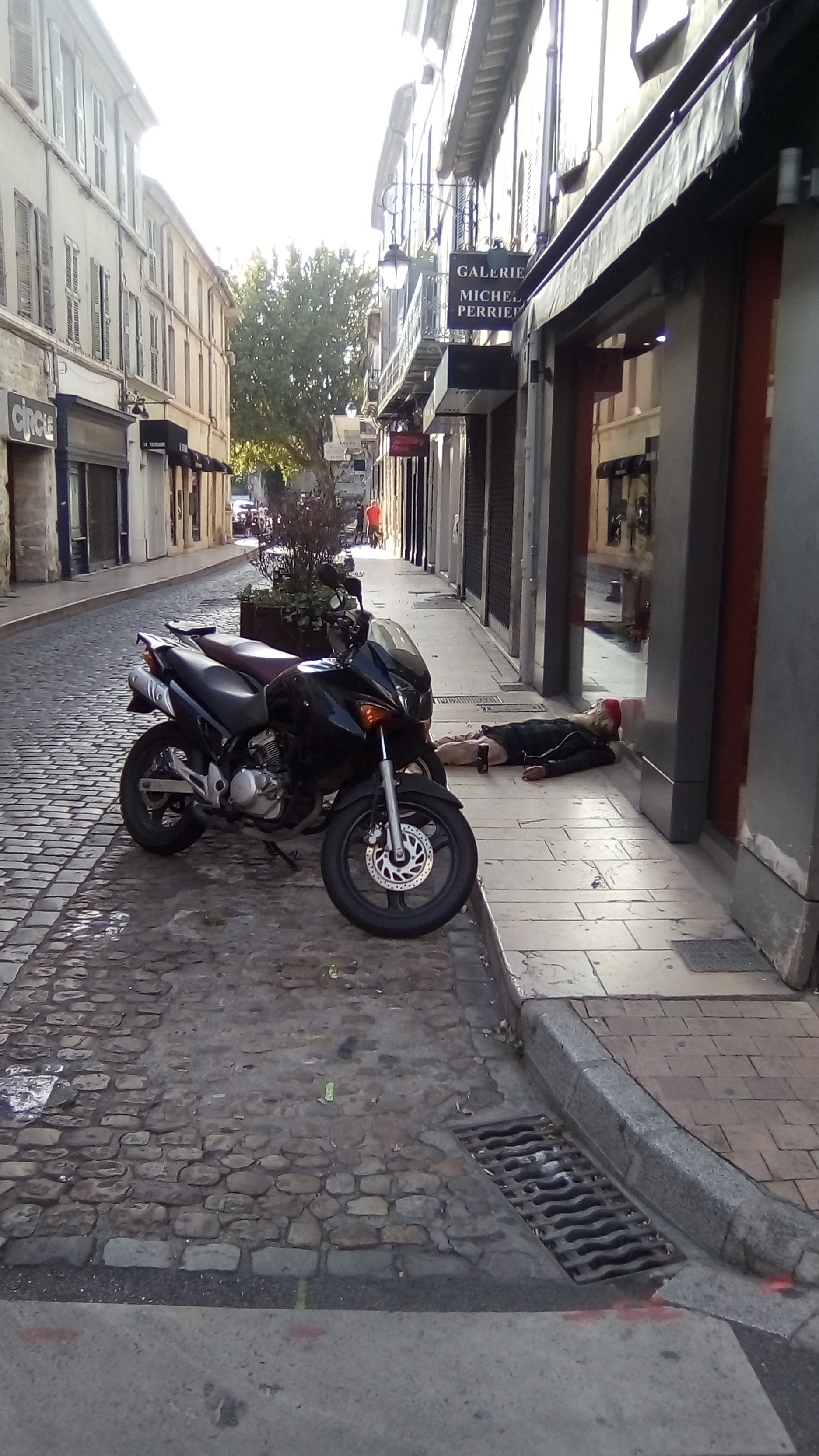 Drink sensibly not the best place to sleep off a hangover however drunk you are, he was muttering in his sleep no idea if he was Scottish or French or whatever. He would have made a lot more money if he placed his hat on the ground and had a guitar beside him not a can of Guinness. Still not a great scene during a break to Avignon in August which is a beautiful place to visit been with my daughter and on my own which was a little odd at first Always Eat at the same Italian Restaurant Milano every visit in the Evenings they treat you like one of the family fantastic place and service and great food at reasonable prices …